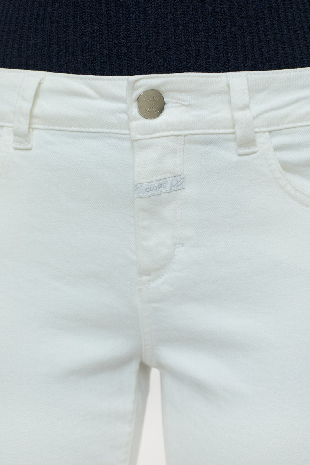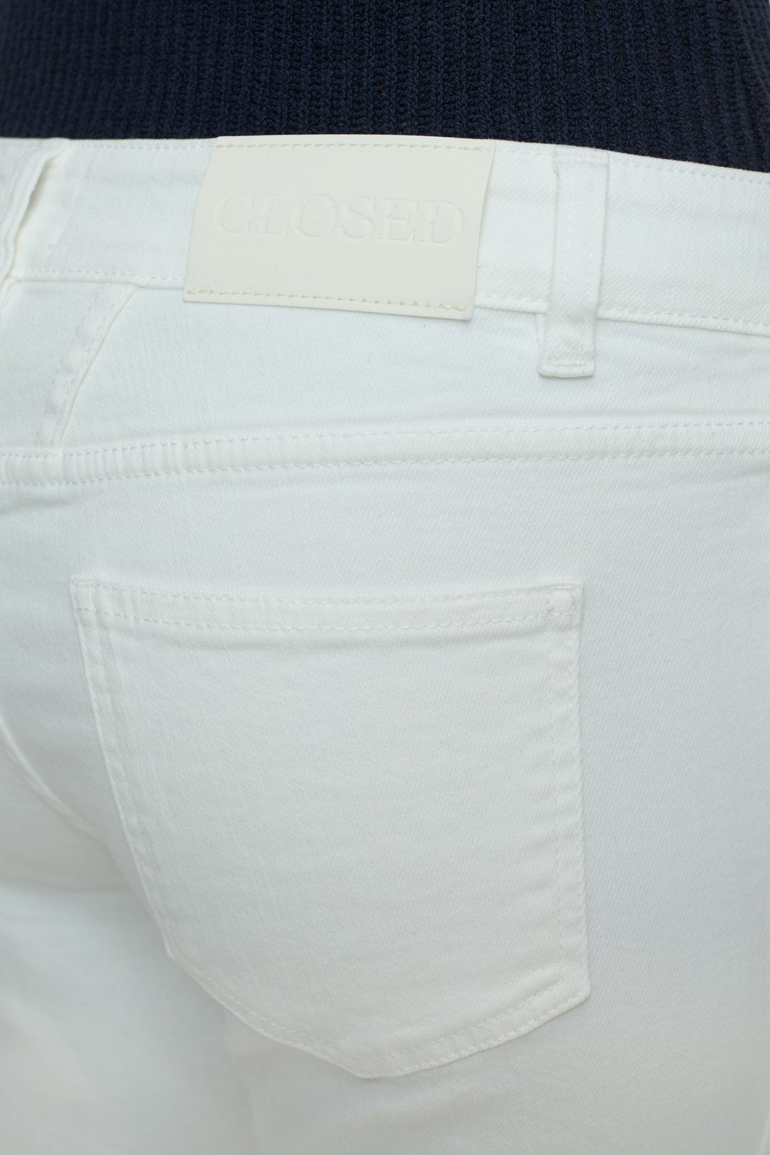 – Looks like: ecru-white denim, tonal stitching