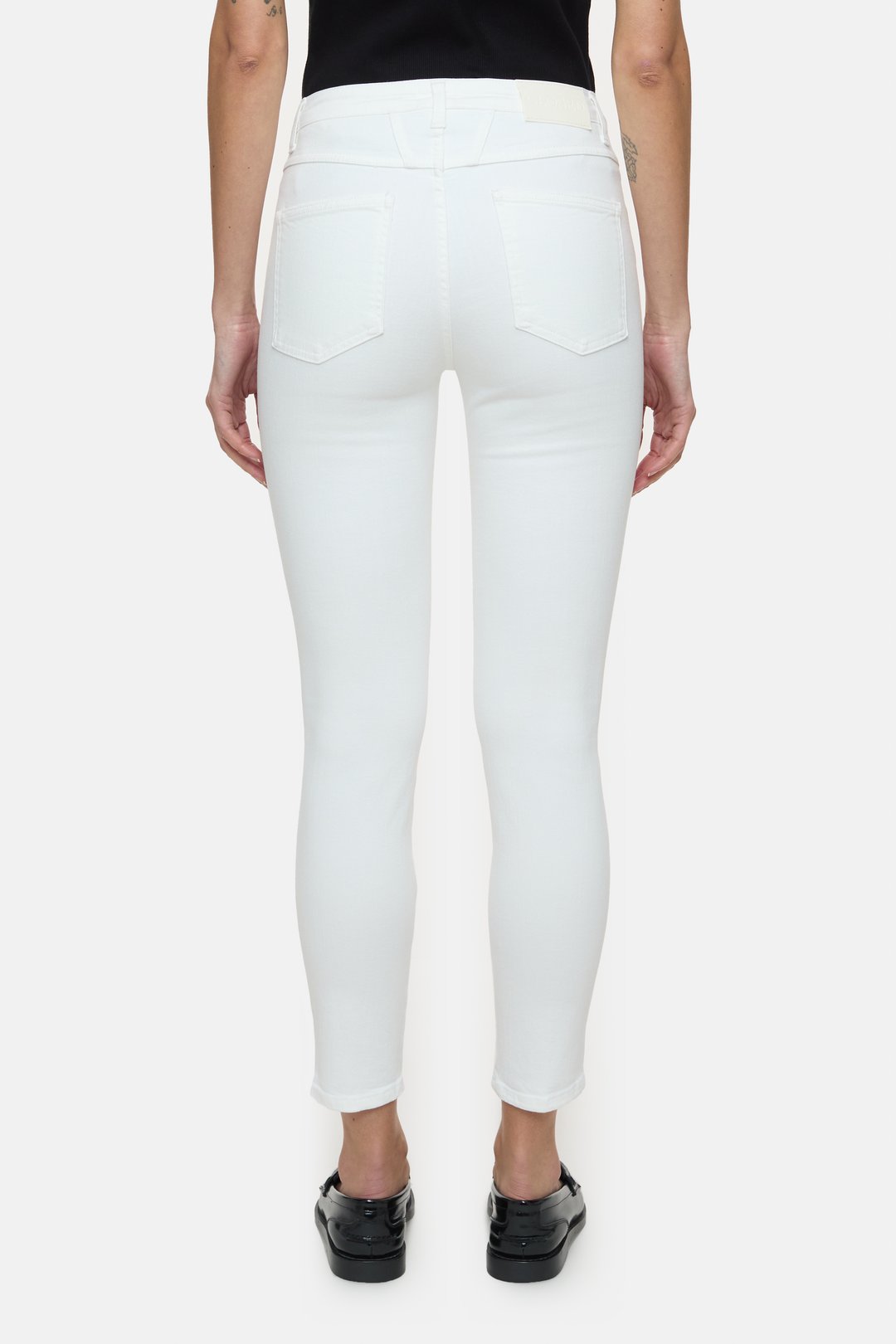– Slim fit / Mid waist / Drainpipe leg / Cropped length