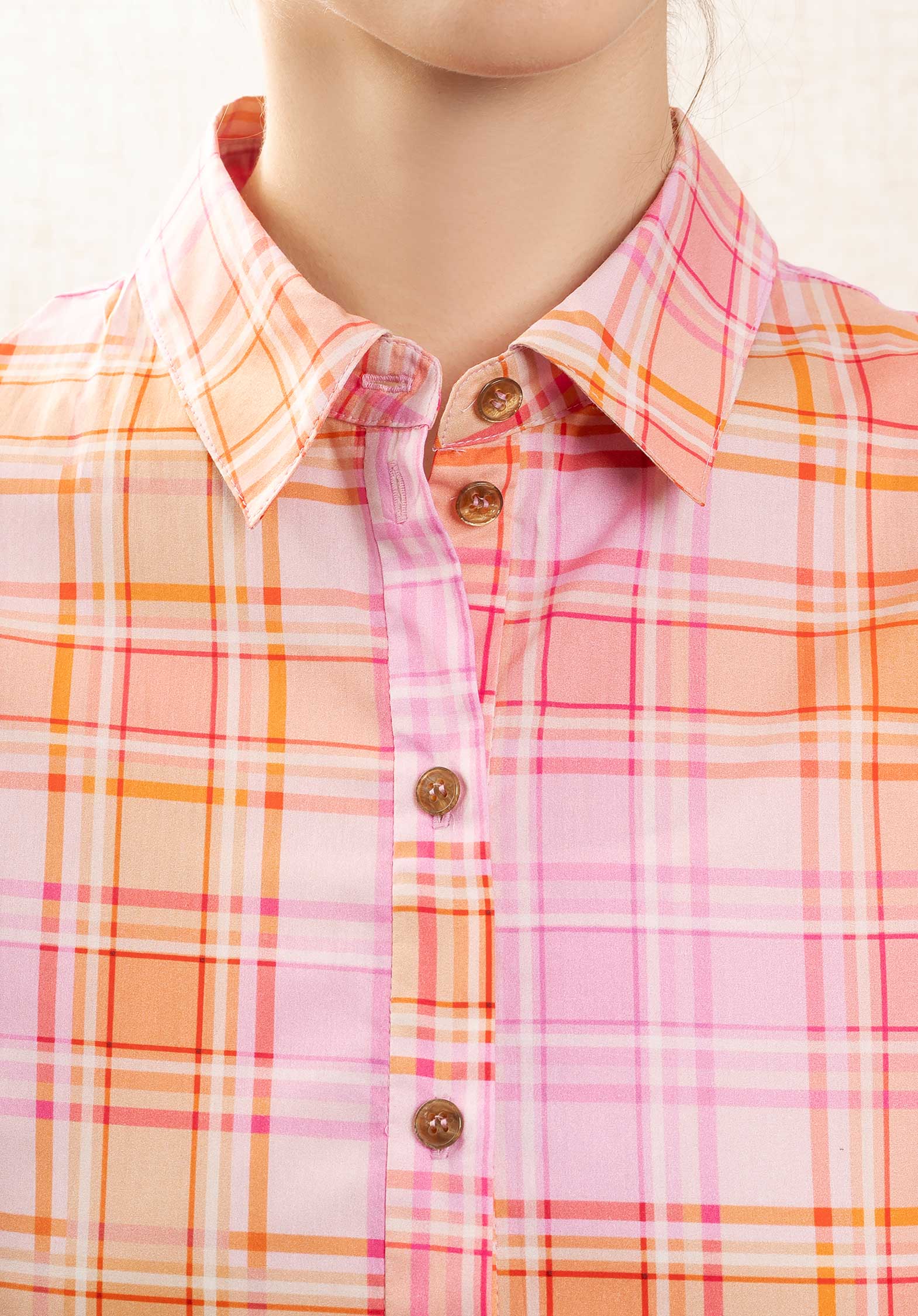 Small neck and collar foot, button on the entire length, small tone -on -tone buttons.