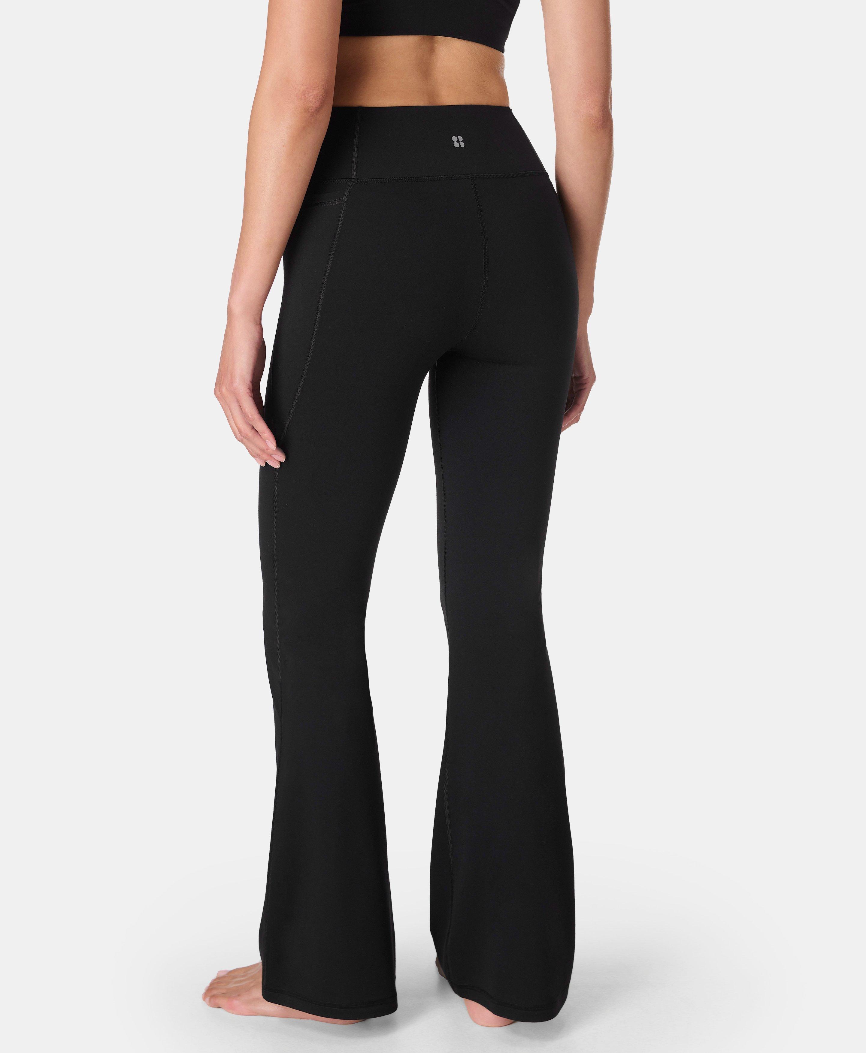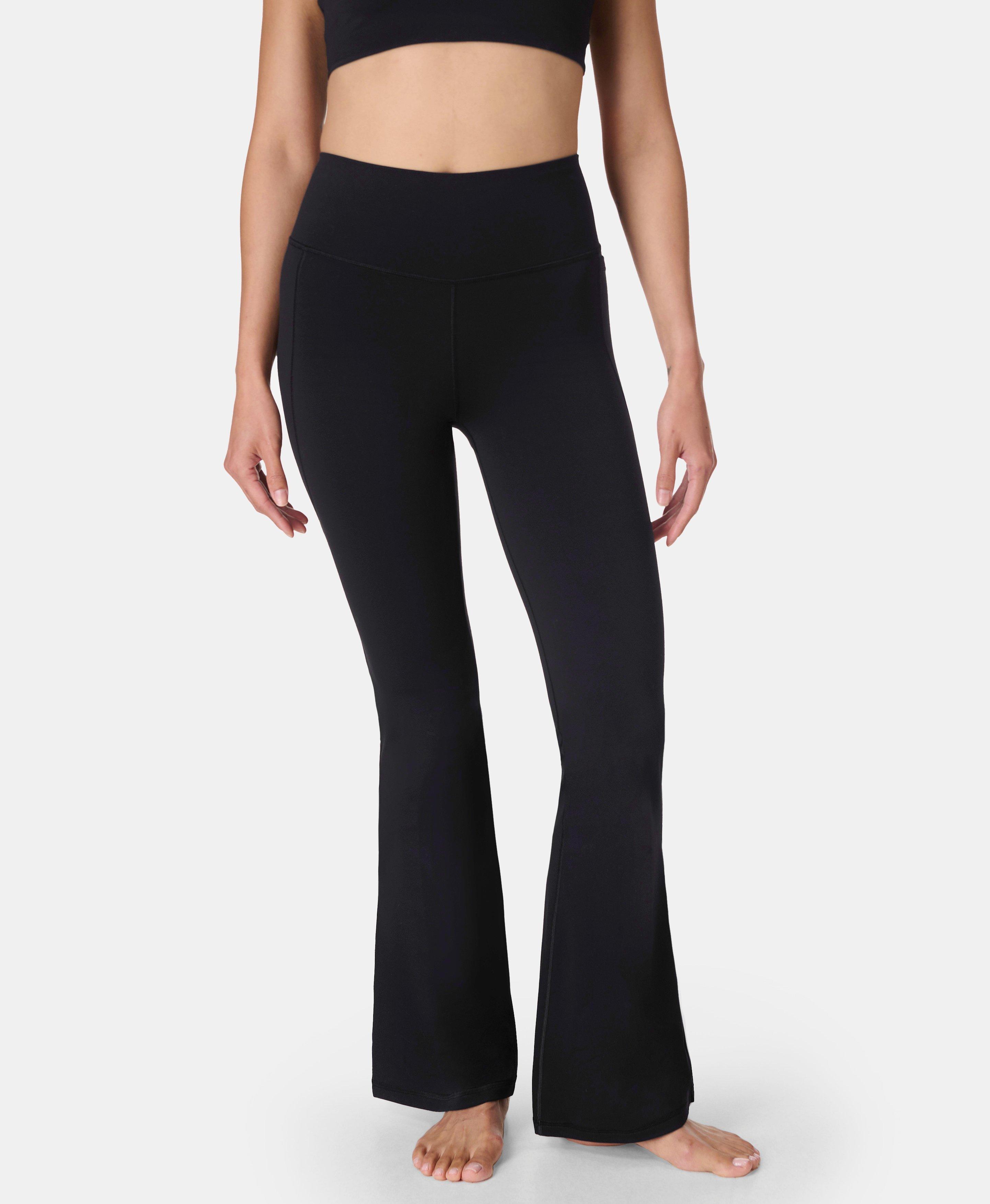 Introducing our incredibly soft, streamlined new performance flares for yoga, Pilates and barre . 74% recycled fabric is quick-drying and sweat-wicking with gentle compression and a supple, second-skin softness that feels like nothing ,. Subtly curved high waist with a supportive fit that hugs your body and flexes as you flow. Our most pared-back design with no visible seams and a smooth waistband for comfort on the mat. Inseam length: 76cm / 30". Model