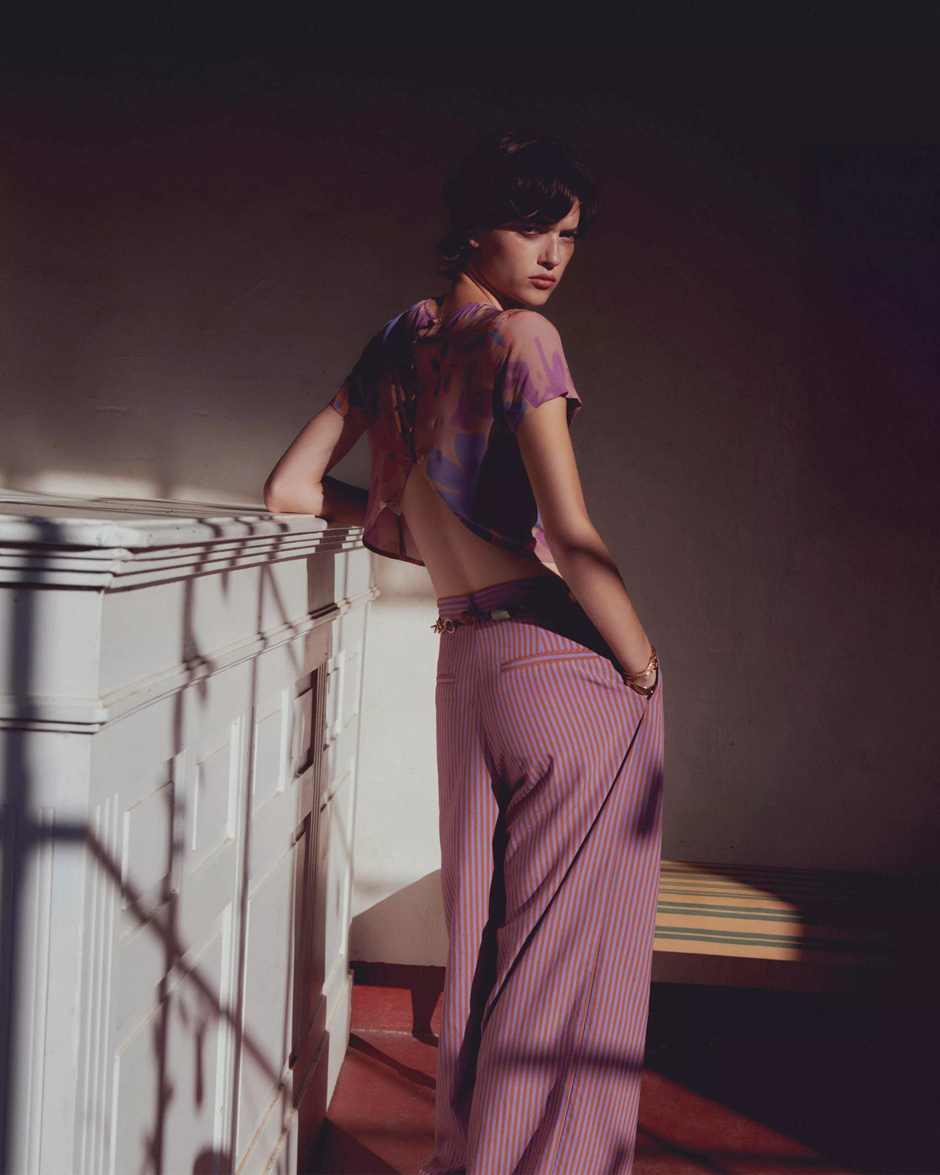 Short top, buttoned at the back, in a fluid, airy viscose fabric, printed and finished in Italy, exclusive Sessn pattern.