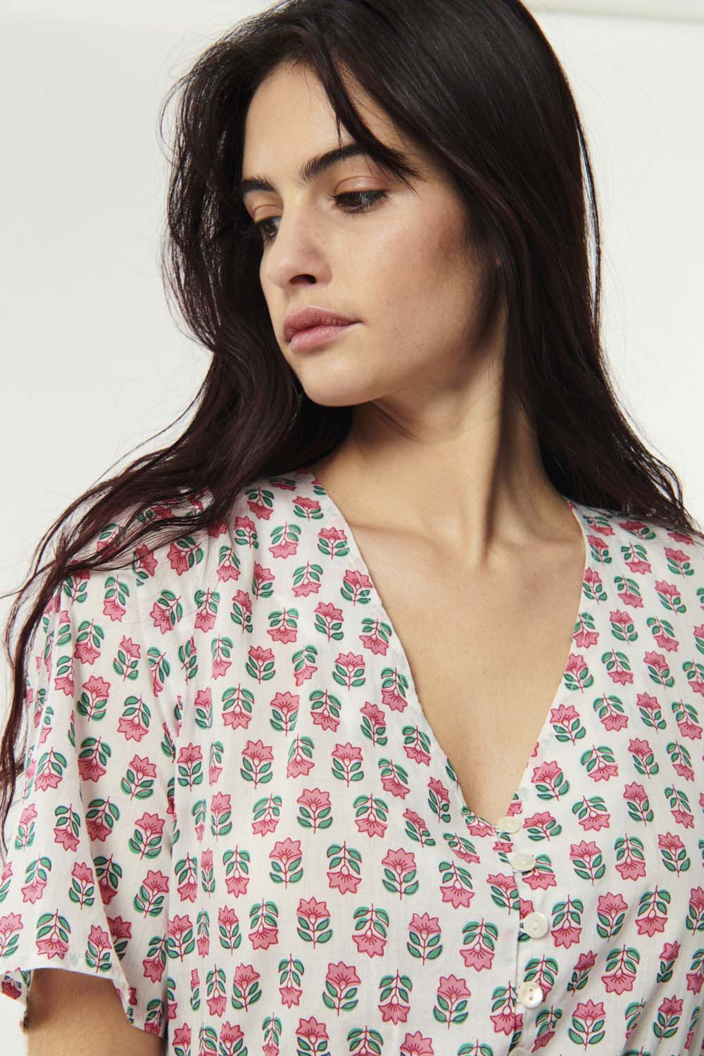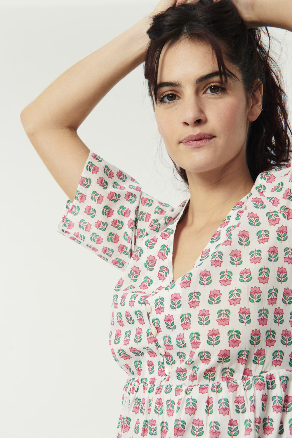 Jasmin print, exclusive to Des Petits Hauts: depicting dainty Indian flowers with a stamped effect on a white background